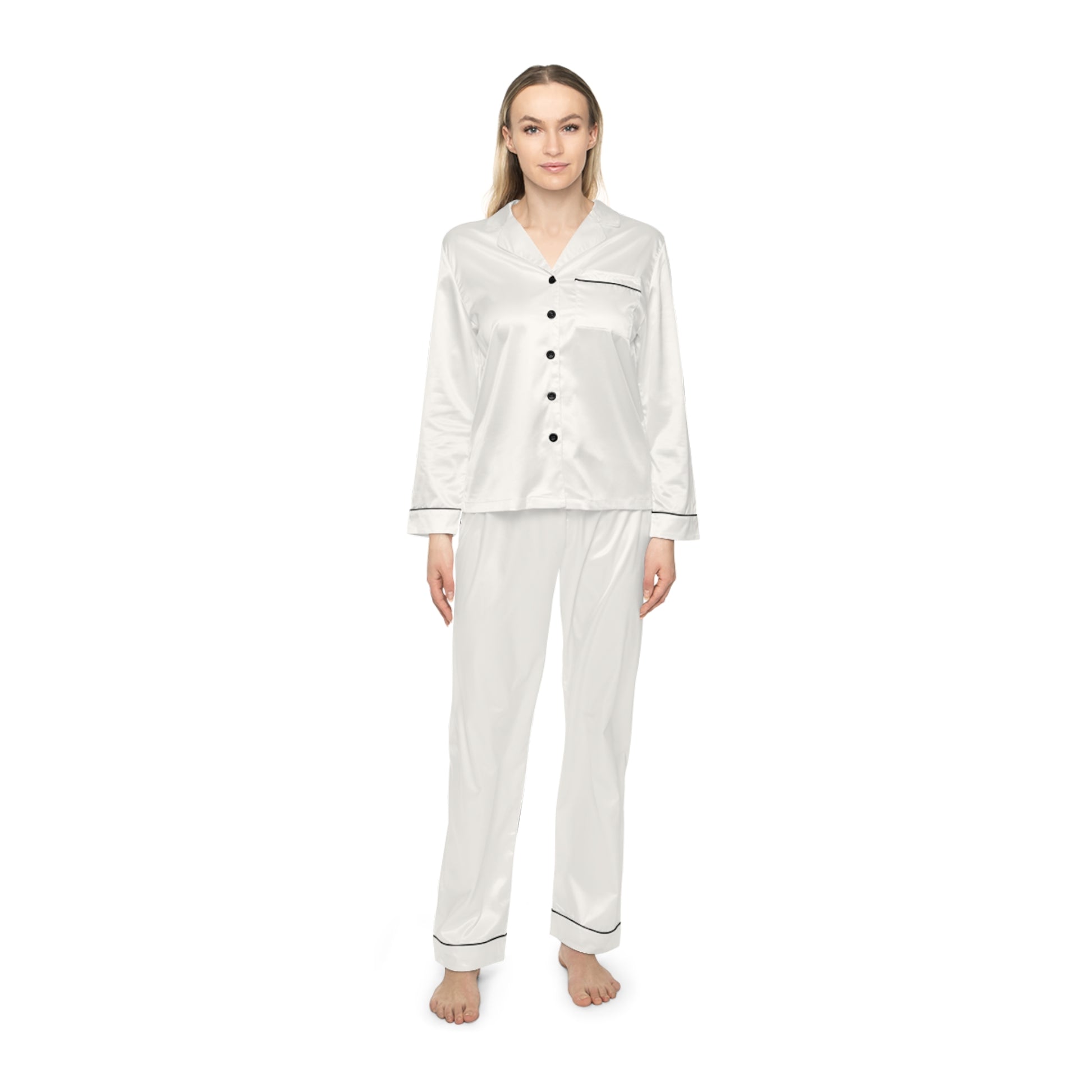 Indulge in luxury with these satin beige pajamas, featuring a drawstring waist for the perfect fit and a notch lapel collar for a classic look. The soft, satiny texture feels great on the skin, making it ideal for leisure or nightwear. Perfect for those who enjoy lounging in style and comfort, these pajamas are a great addition to your wardrobe.