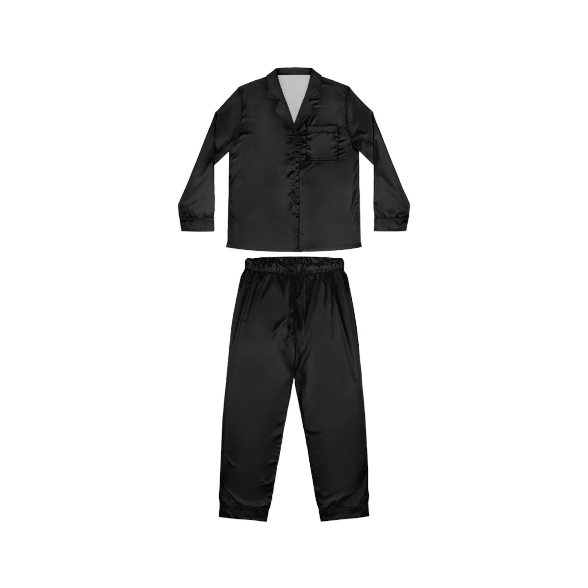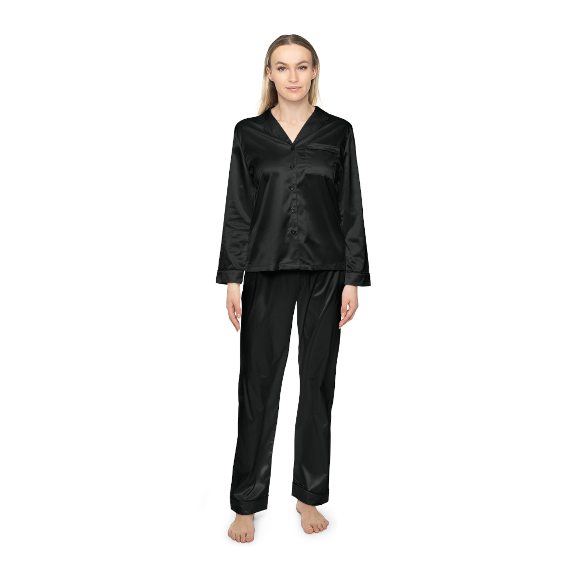 Luxurious black satin pajamas that exude elegance and comfort. Perfect for lounging at home or enjoying a relaxing night's sleep. Ideal for women who appreciate high-quality sleepwear.