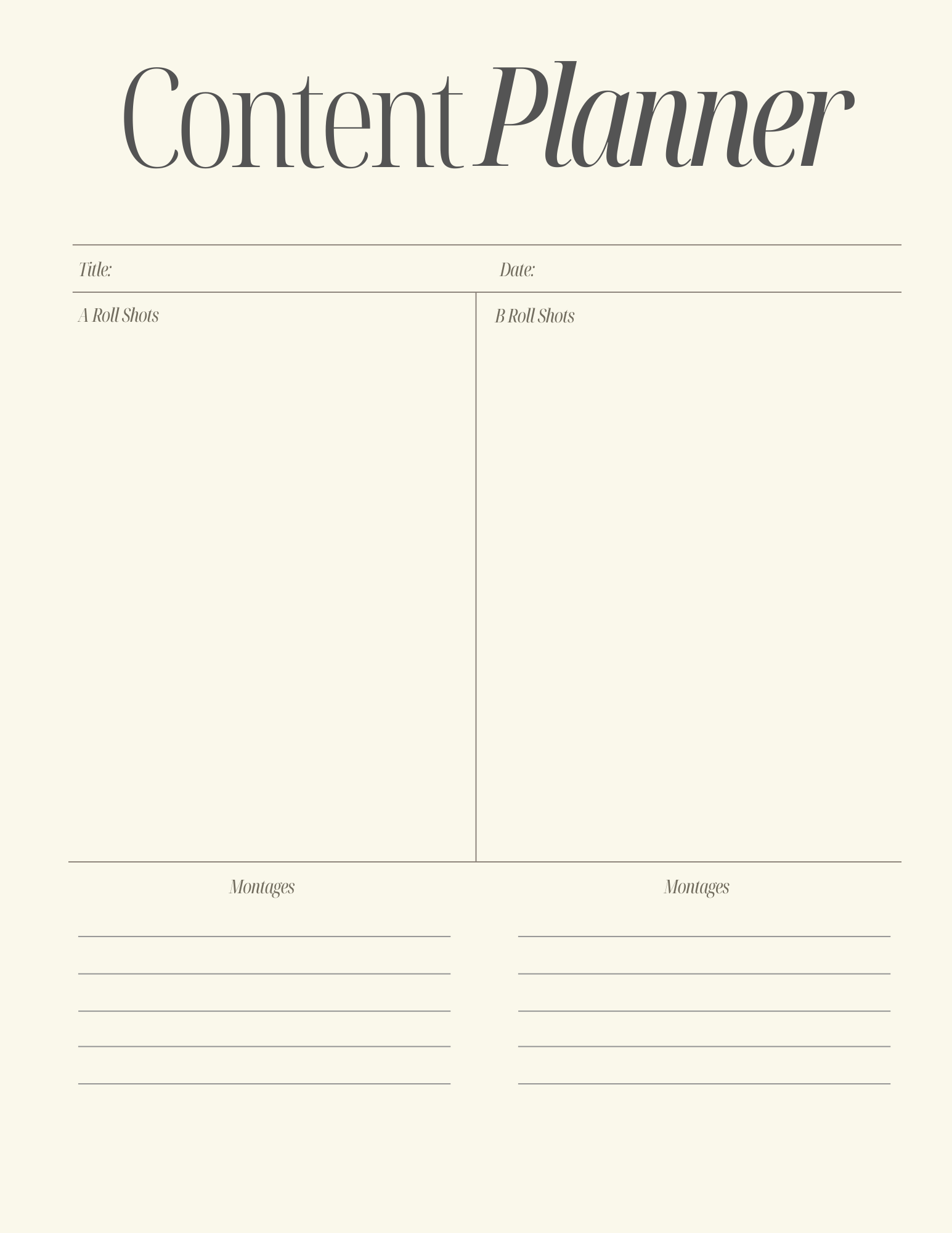 Are you a video content creator or filmmaker looking for a structured way to organize your projects? Our Ultimate Video Content Planner has everything you need to plan your A-roll, B-roll, transitions, music, and color grading. Take your creativity to the next level with this all-in-one planner!