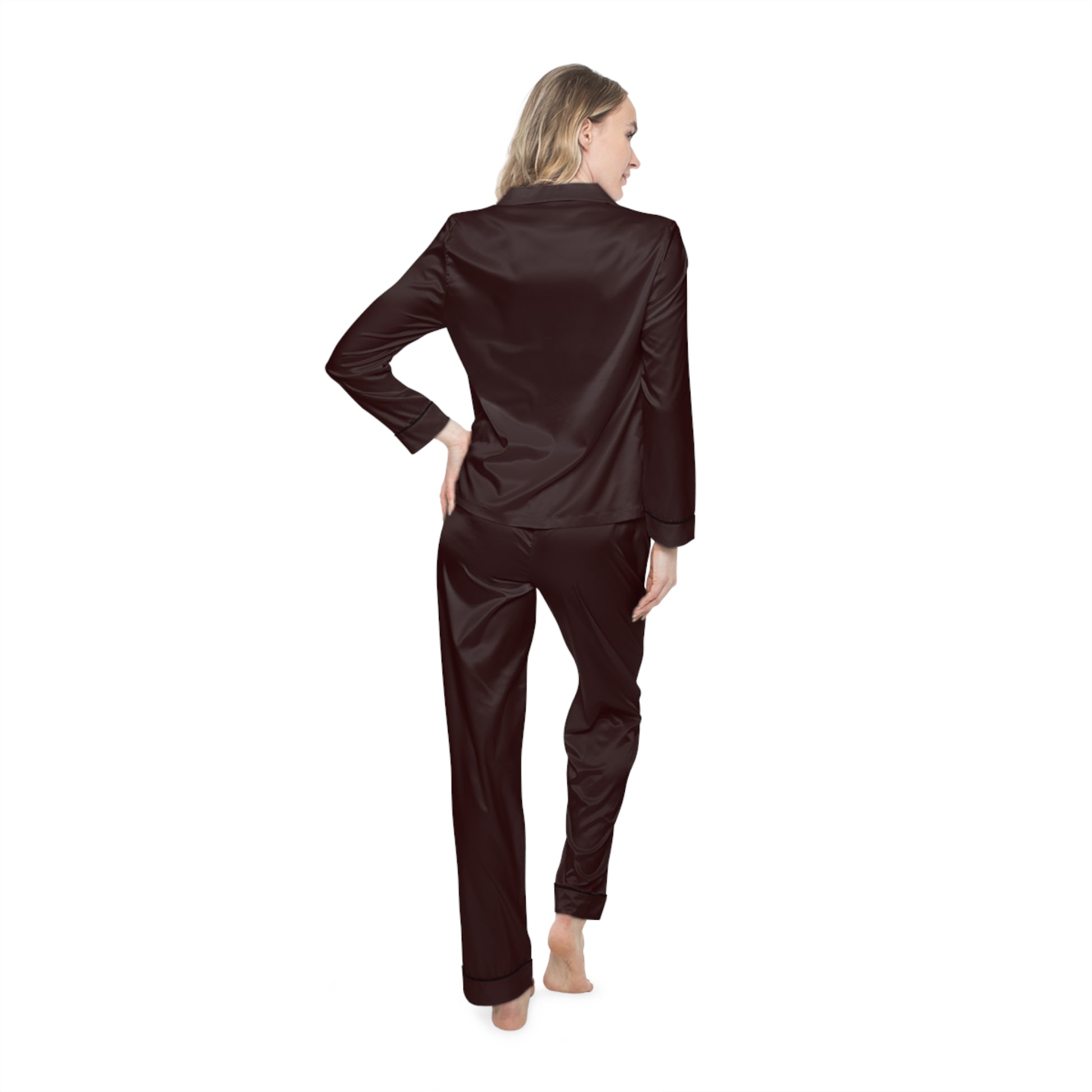 Wine satin pajamas that exude elegance and luxury. Perfect for a cozy night in or a relaxing morning. Ideal for women who appreciate comfort and style. Great for holidays like Christmas, birthdays, or as a special gift for a loved one.